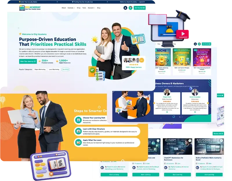 Digital Academy Fortune is a done-for-you (DFY) WordPress website package that lets you launch your own professional online academy — complete with ready-to-sell courses, ebooks, and digital products — in a matter of minutes.